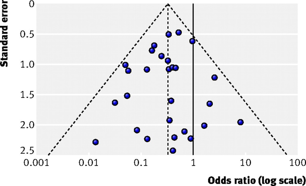 - If there is no asymmetry – plot will be larger at the bottom & smaller at the bottom. As the study precision increases, the variability in effect should decrease.